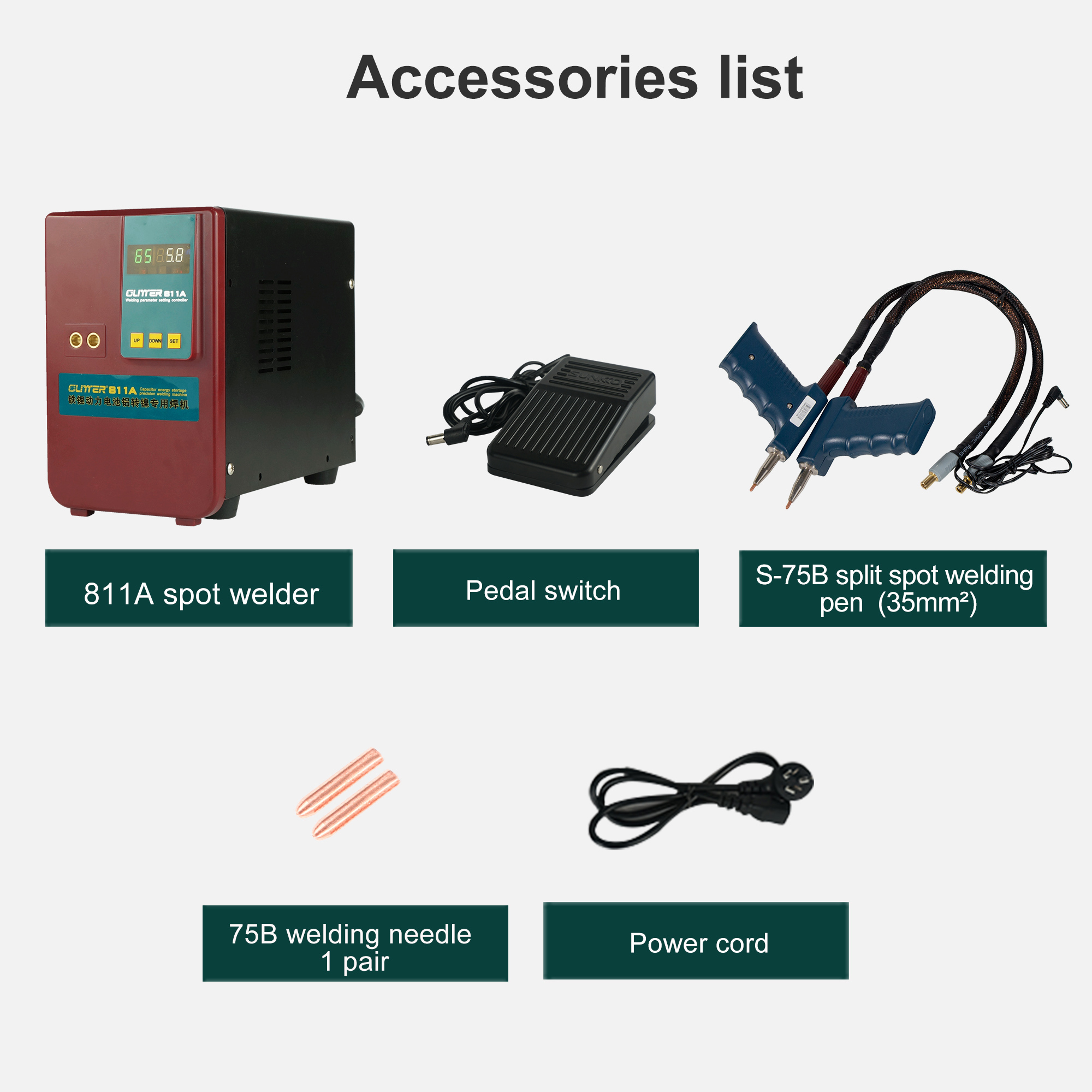 9. The first dual welding tool mode combination is convenient for users weld a wide range of workpieces flexibly, such as batteries and metal parts.