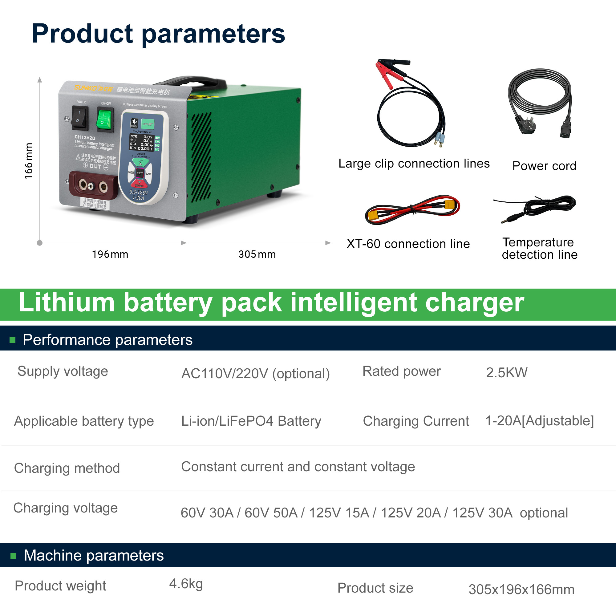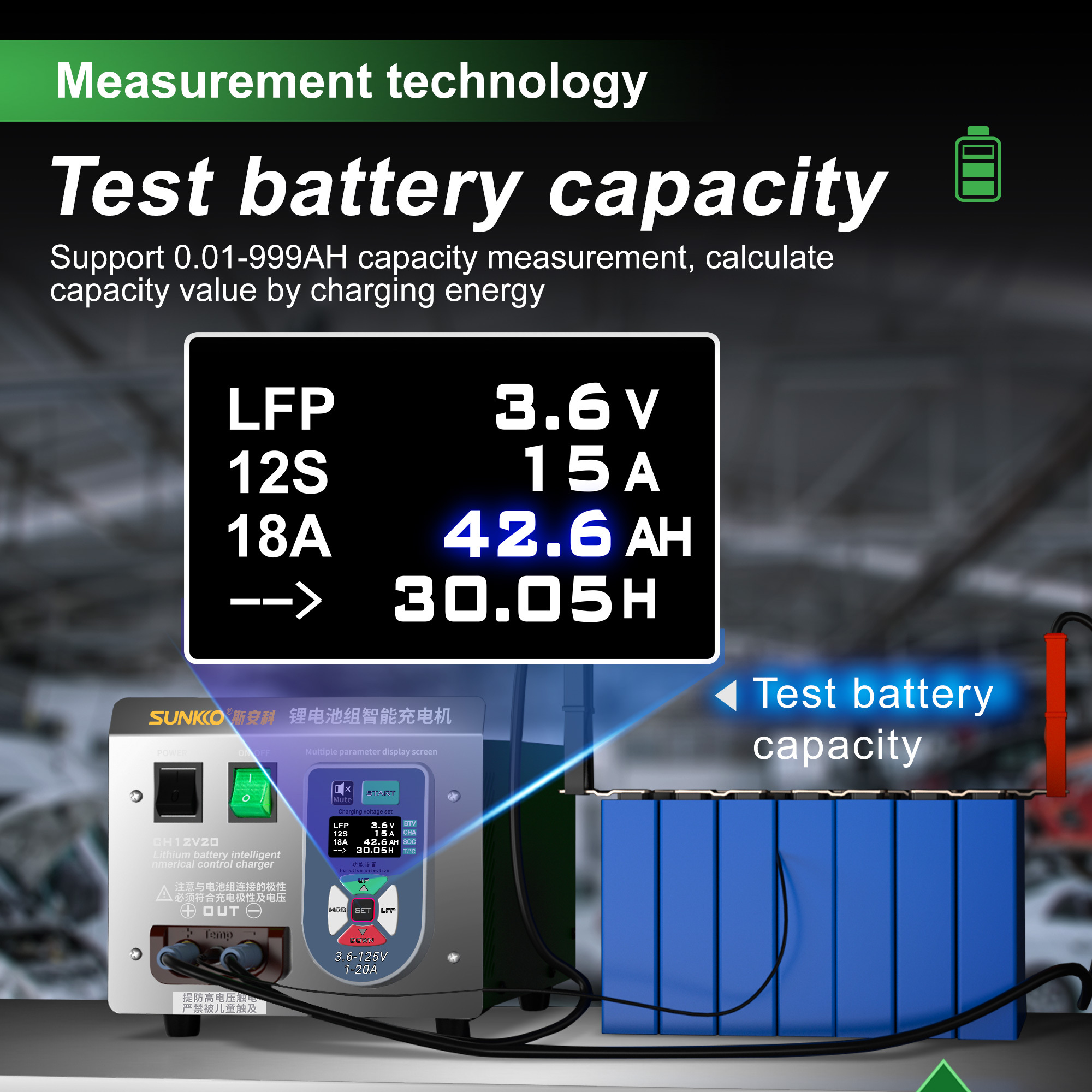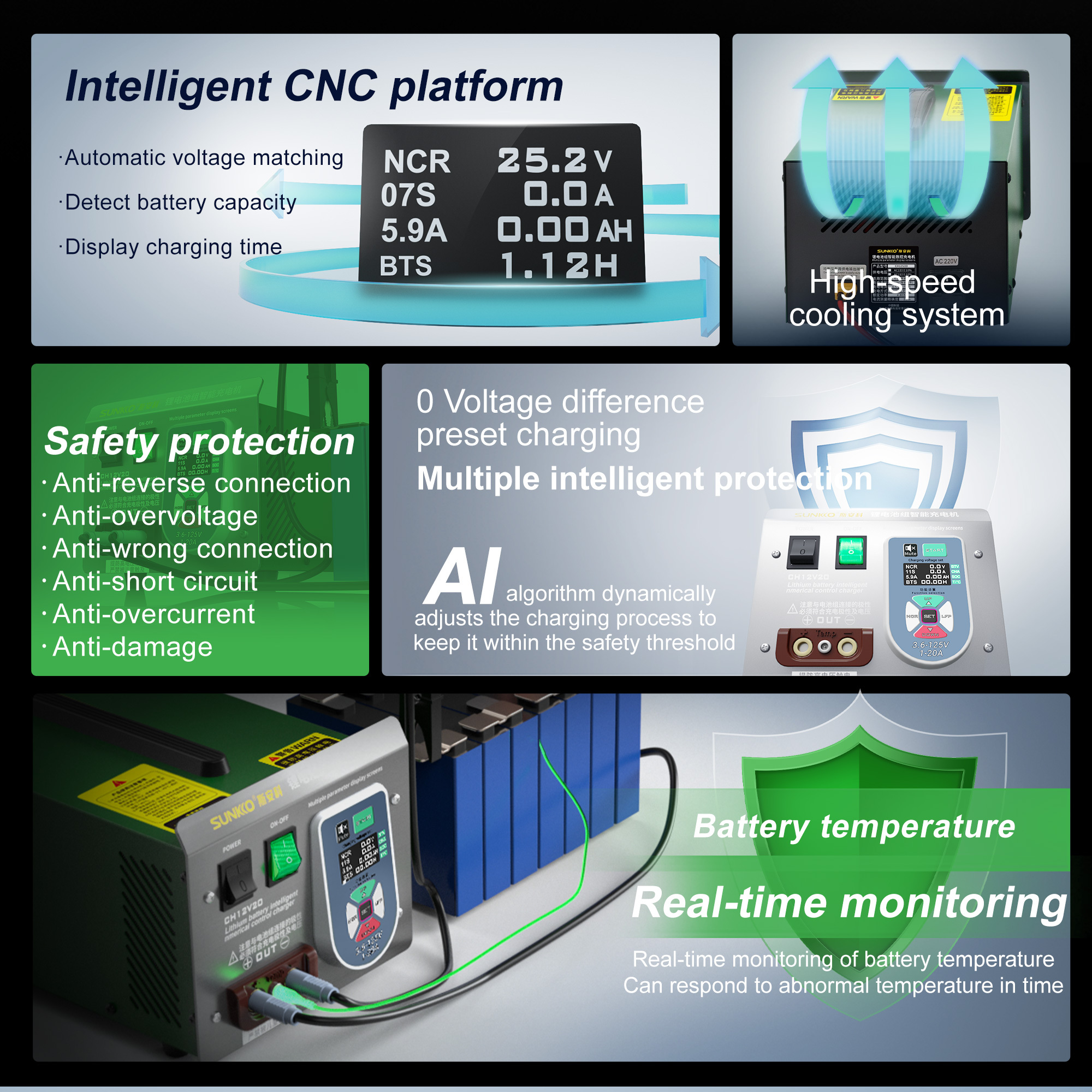 SUNKKO CH12V20 Lithium Battery Pack Intelligent Charger 125V20A