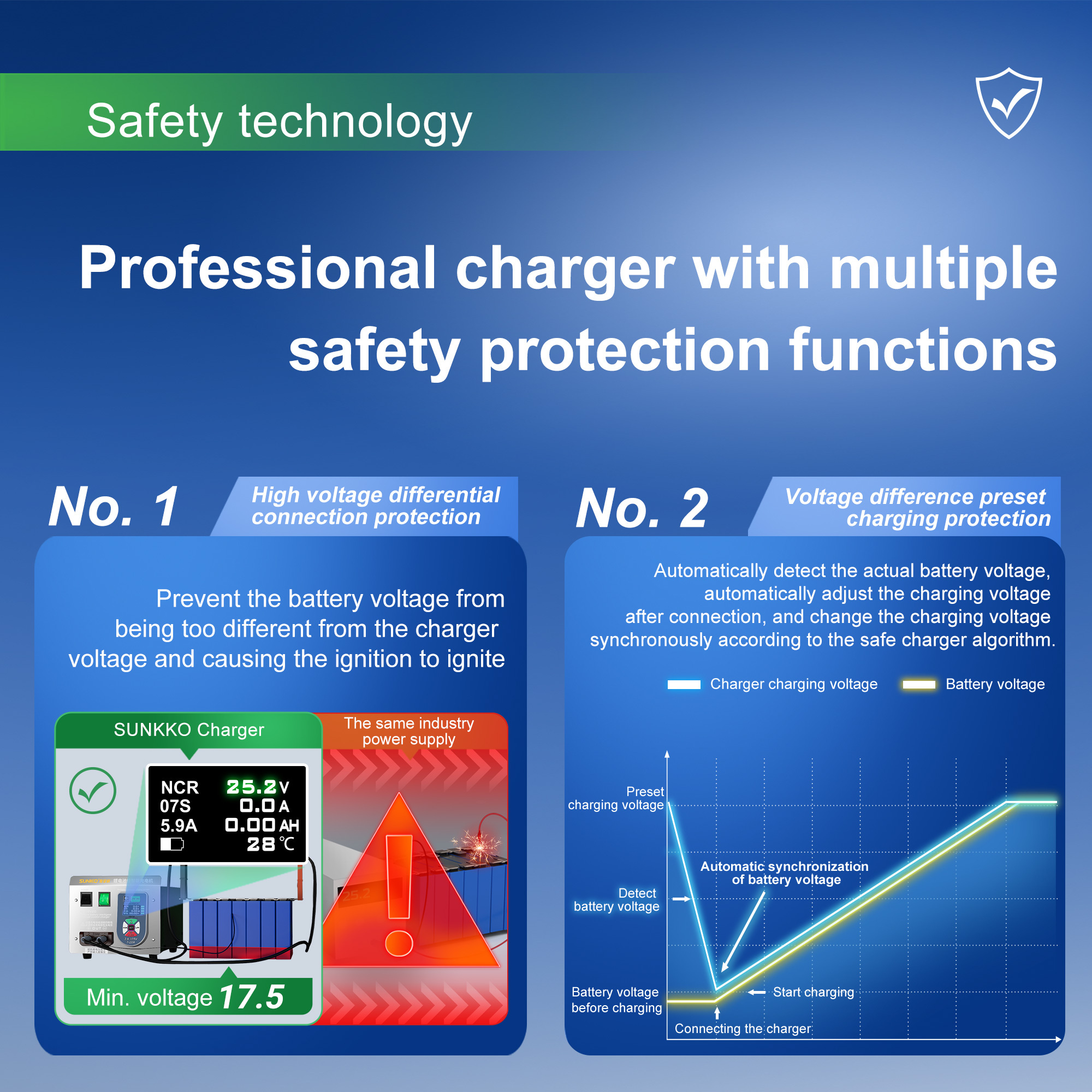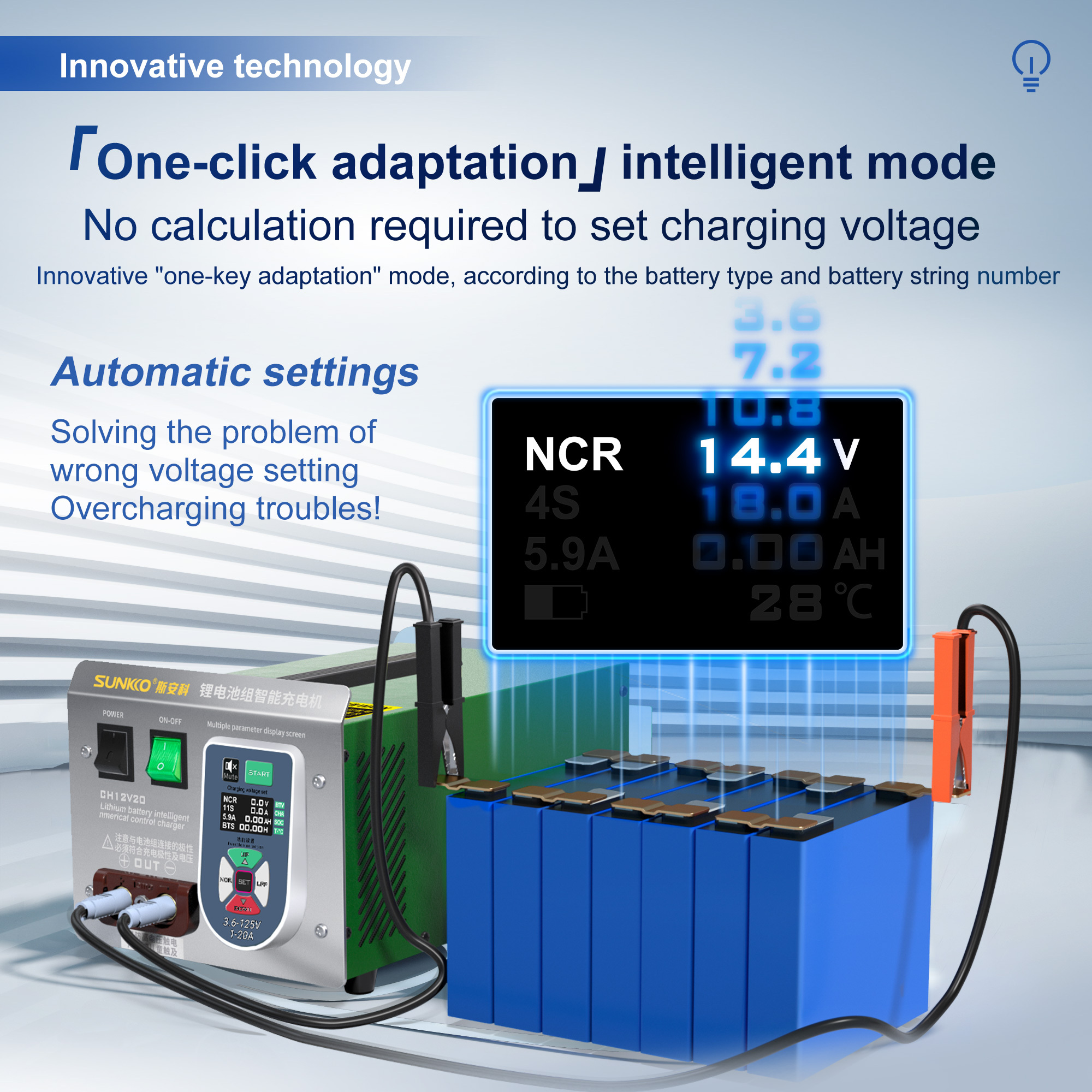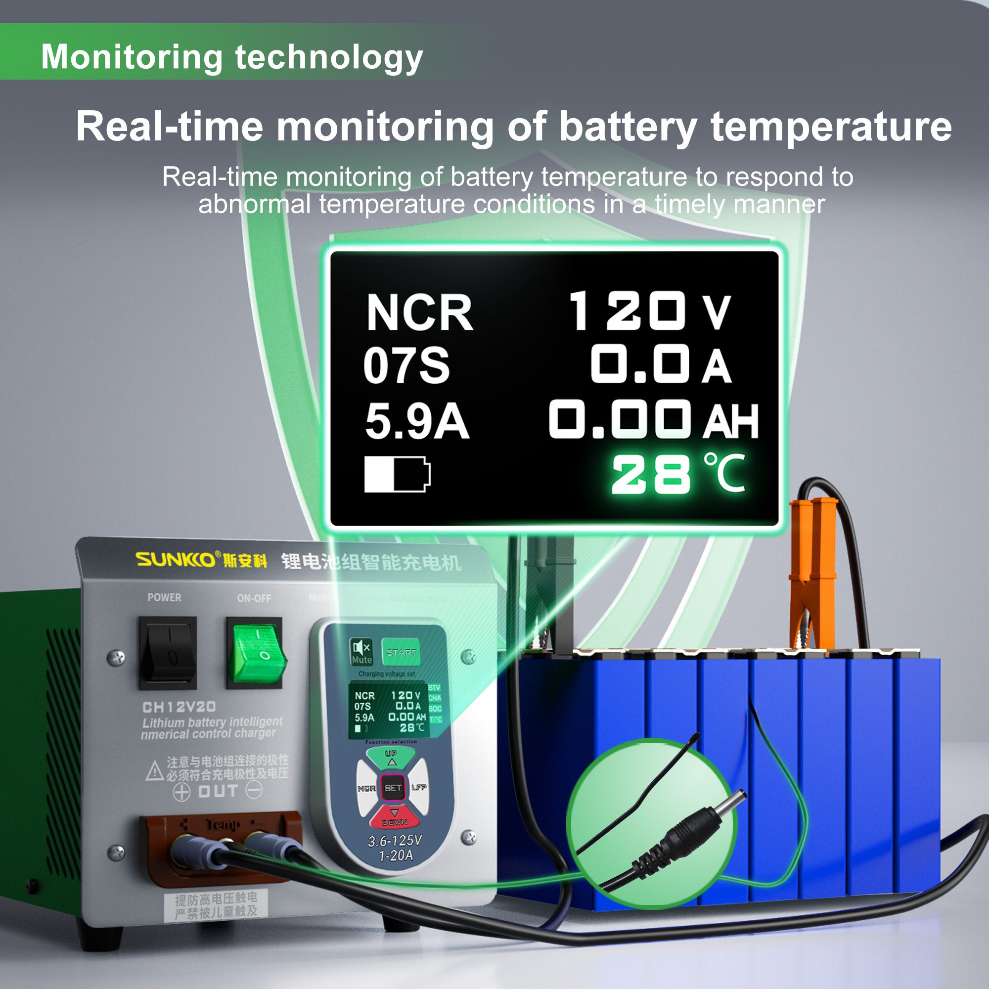 SUNKKO CH12V20 Lithium Battery Pack Intelligent Charger 125V20A